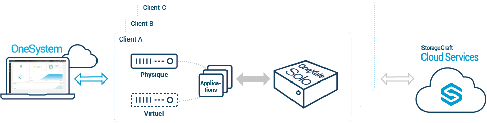 Solution pleinement intégrée à StorageCraft Cloud Services (DRaaS) pour assurer une continuité totale des activités grâce à un basculement organisé en un clic dans le cloud. Elle permet la restauration d’une infrastructure entière.
